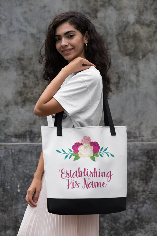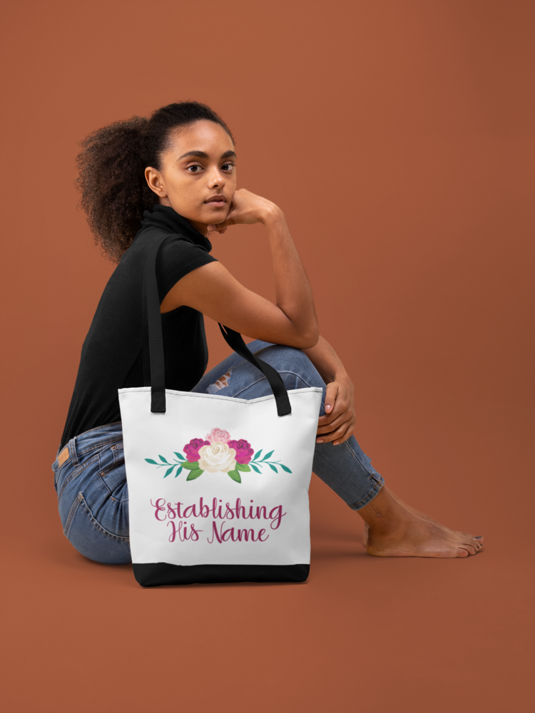 Roomy tote bag to carry everyday necessities. Stylish way to express your faith in an attractive and pretty way. Great dark bottom makes it easier to set on different surfaces without fear of getting it dirty.