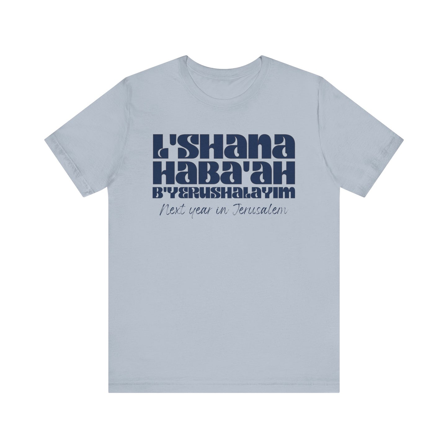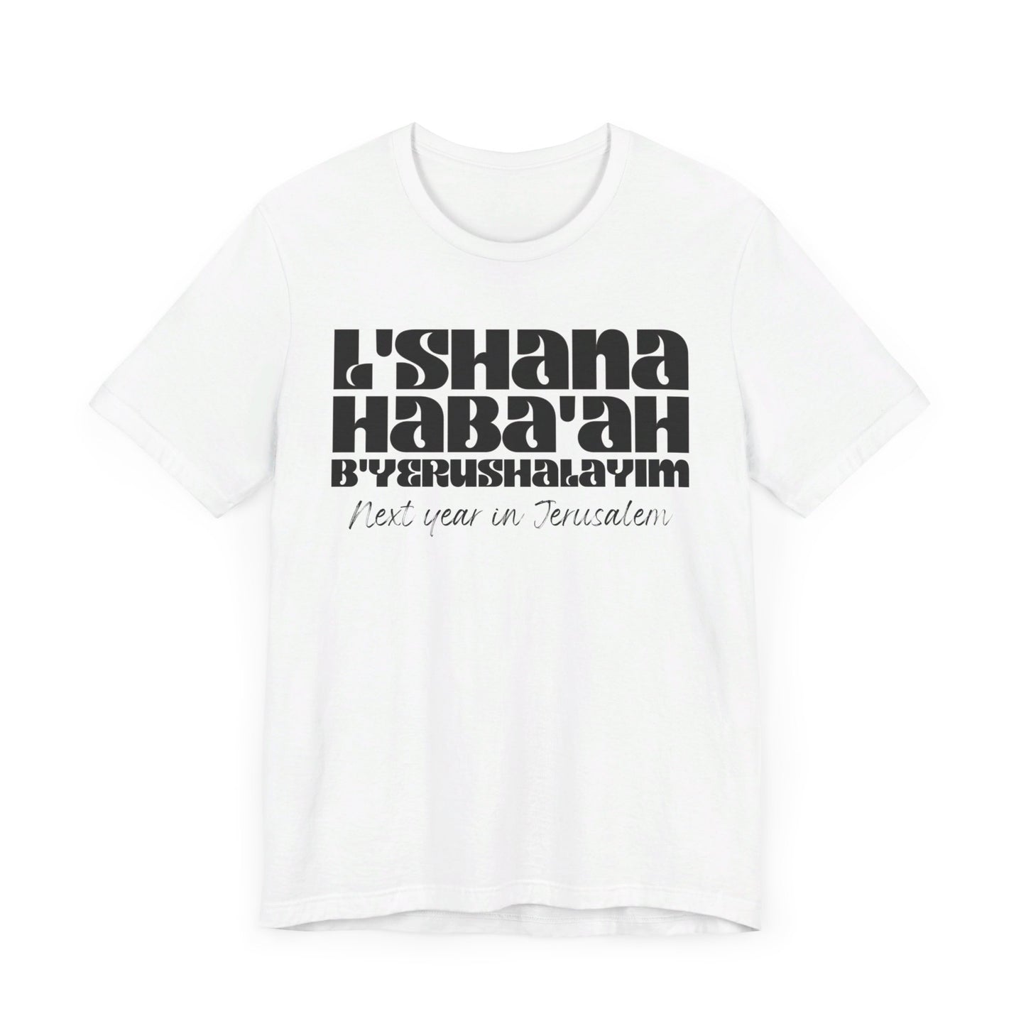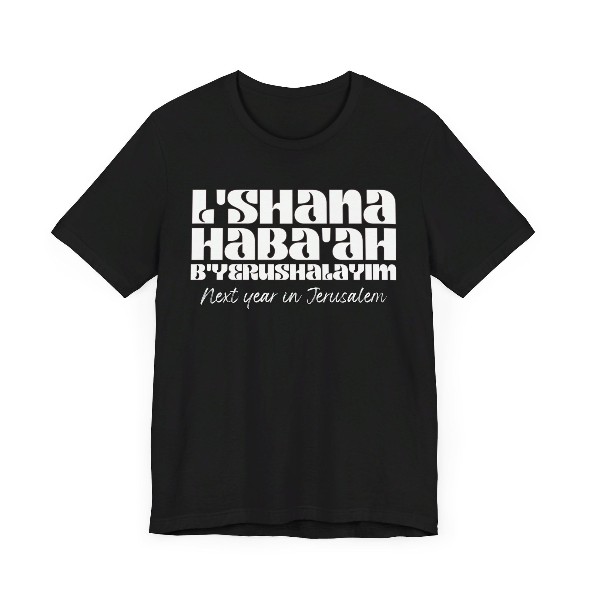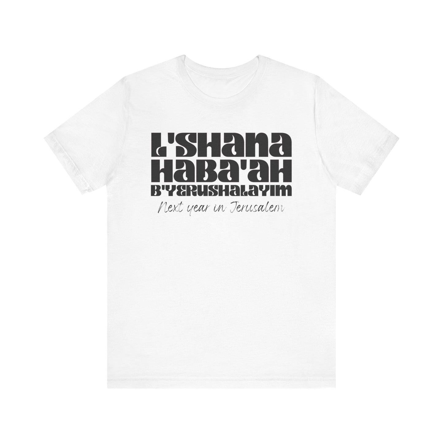 The shirt is made of soft and comfortable cotton, with a classic fit that's suitable for both men and women. Whether you wear it to a worship service, class, or just around town, it's a great way to express your faith in a subtle yet meaningful way. Made with high-quality materials, this shirt is both comfortable and durable, making it perfect for everyday wear. Trust us, when you wear the L'SHANA HABA'AH Tee, you'll not only look great but feel great too knowing that you're spreading a positive message and showing your love for God!