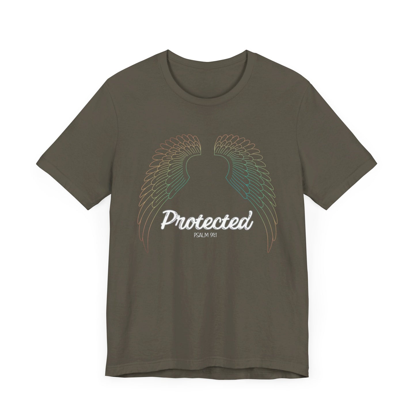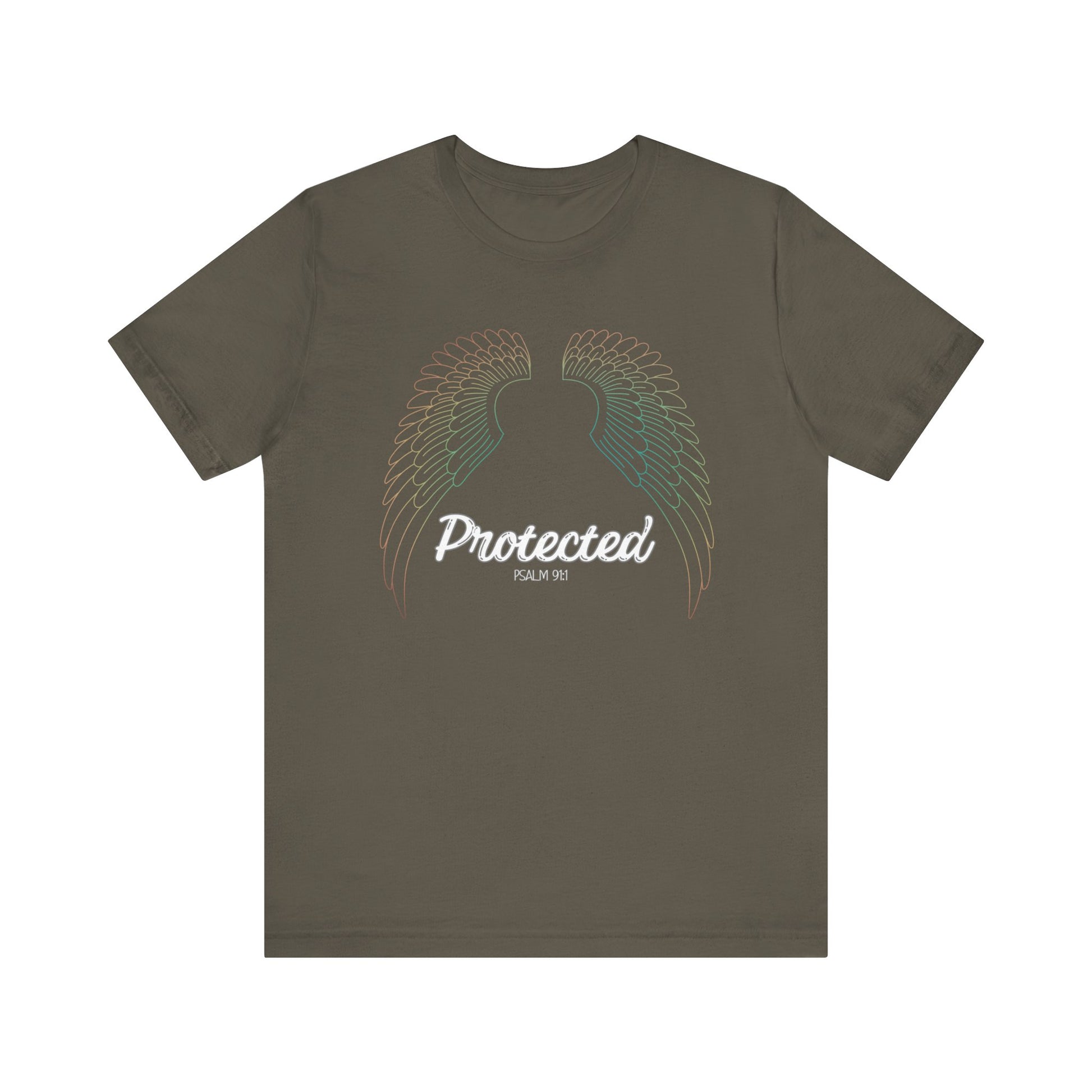 The shirt is made of soft and comfortable cotton, with a classic fit. Whether you wear it to a worship service, class, or just around town, it's a great way to express your faith in a subtle yet meaningful way. Made with high-quality materials, this shirt is both comfortable and durable, making it perfect for everyday wear. Trust us, when you wear the PROTECTED (Green) Tee, you'll not only look great but feel great too knowing that you're spreading a positive message and showing your love for God!