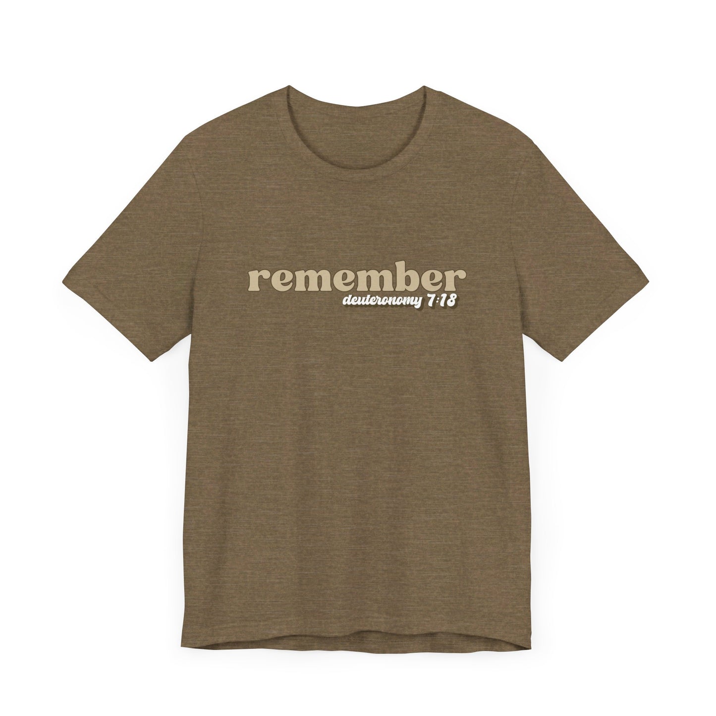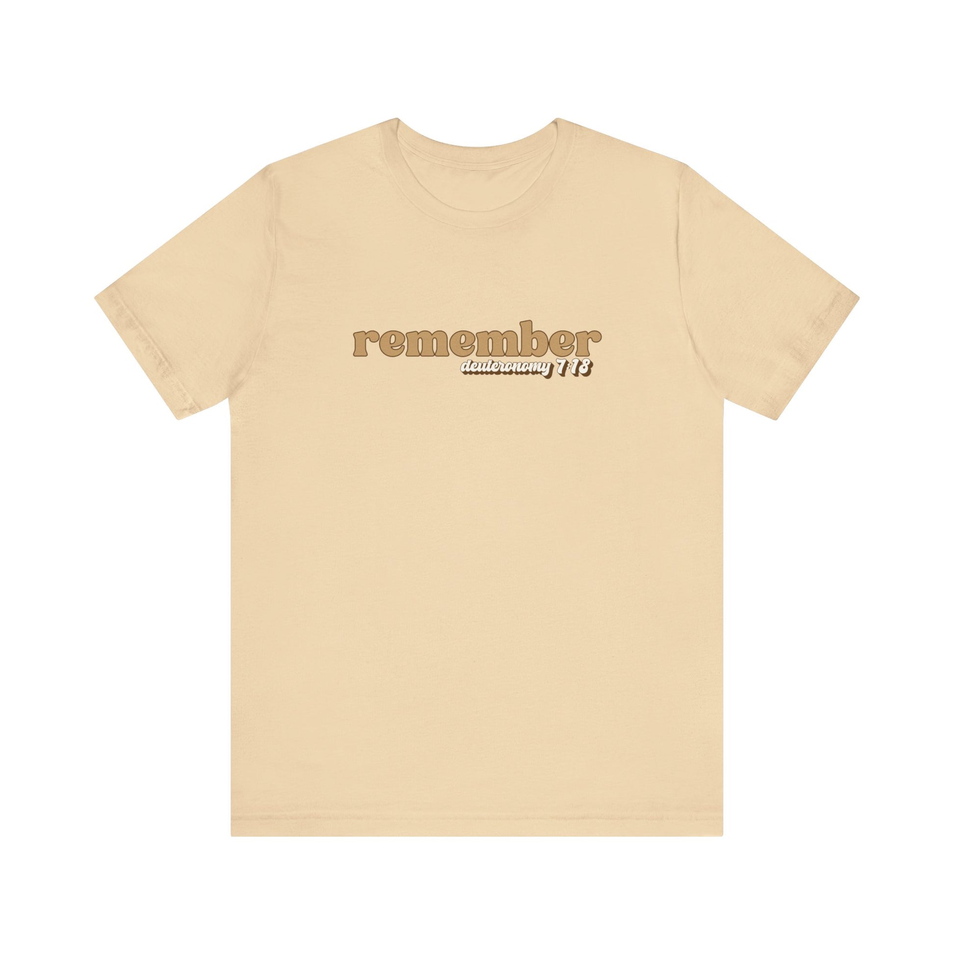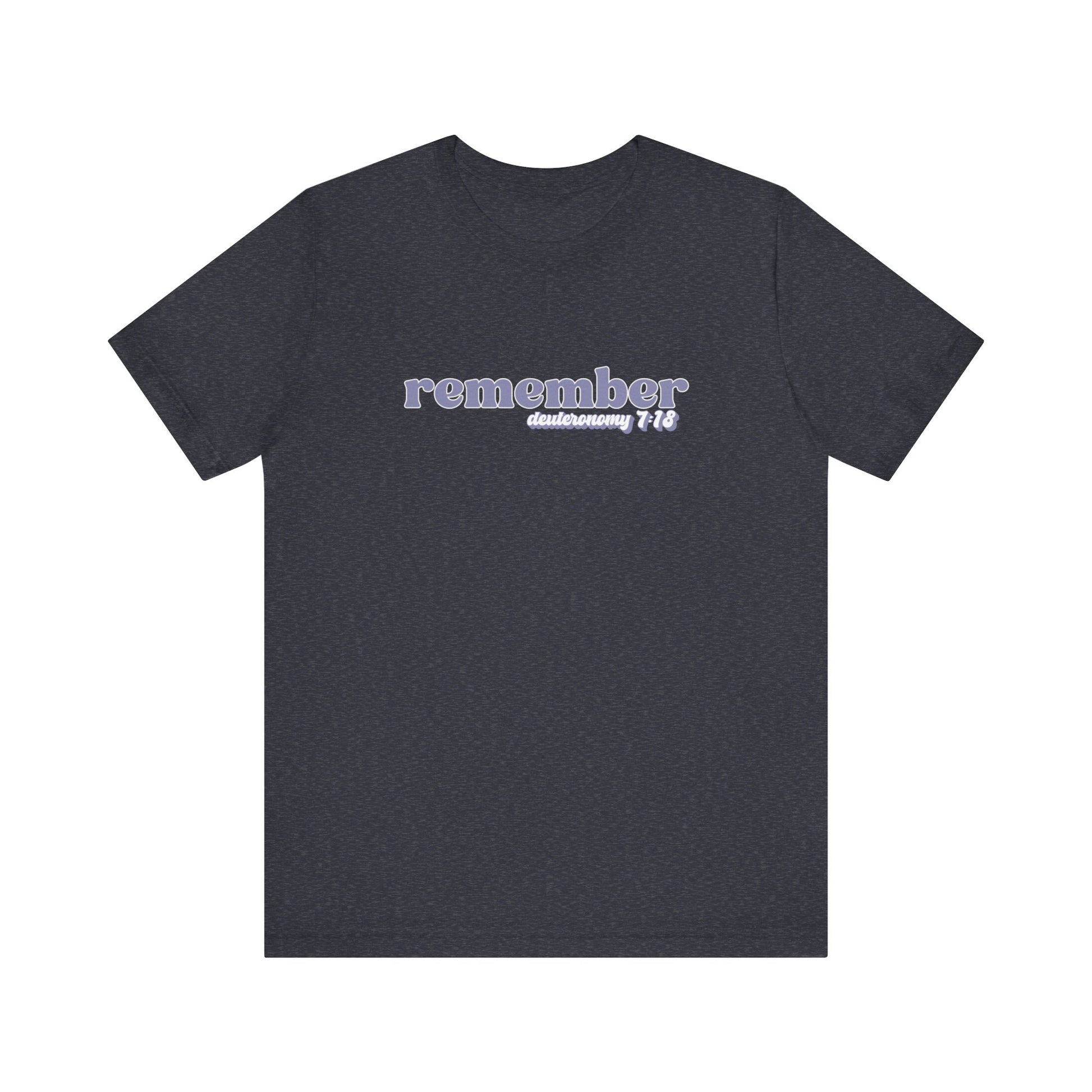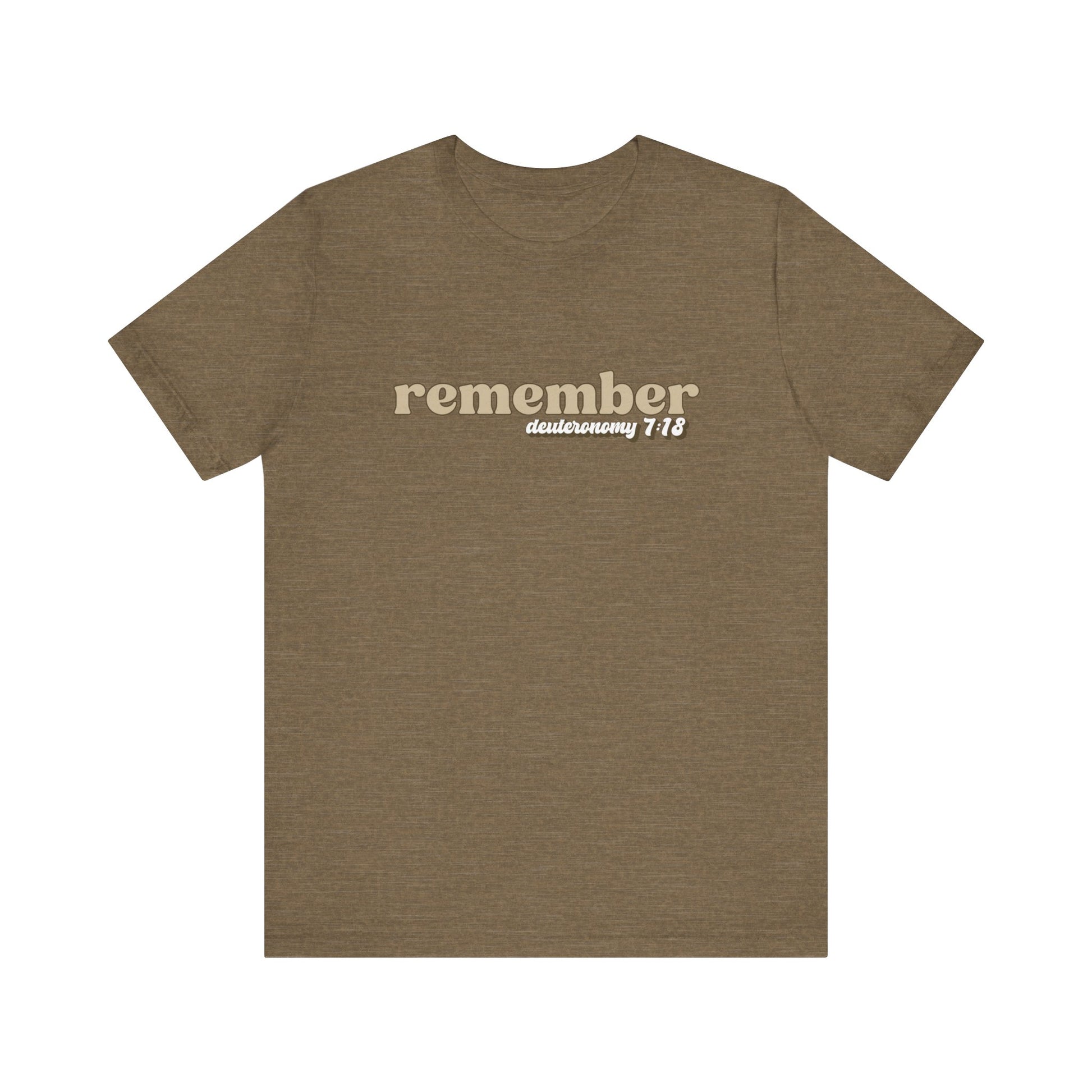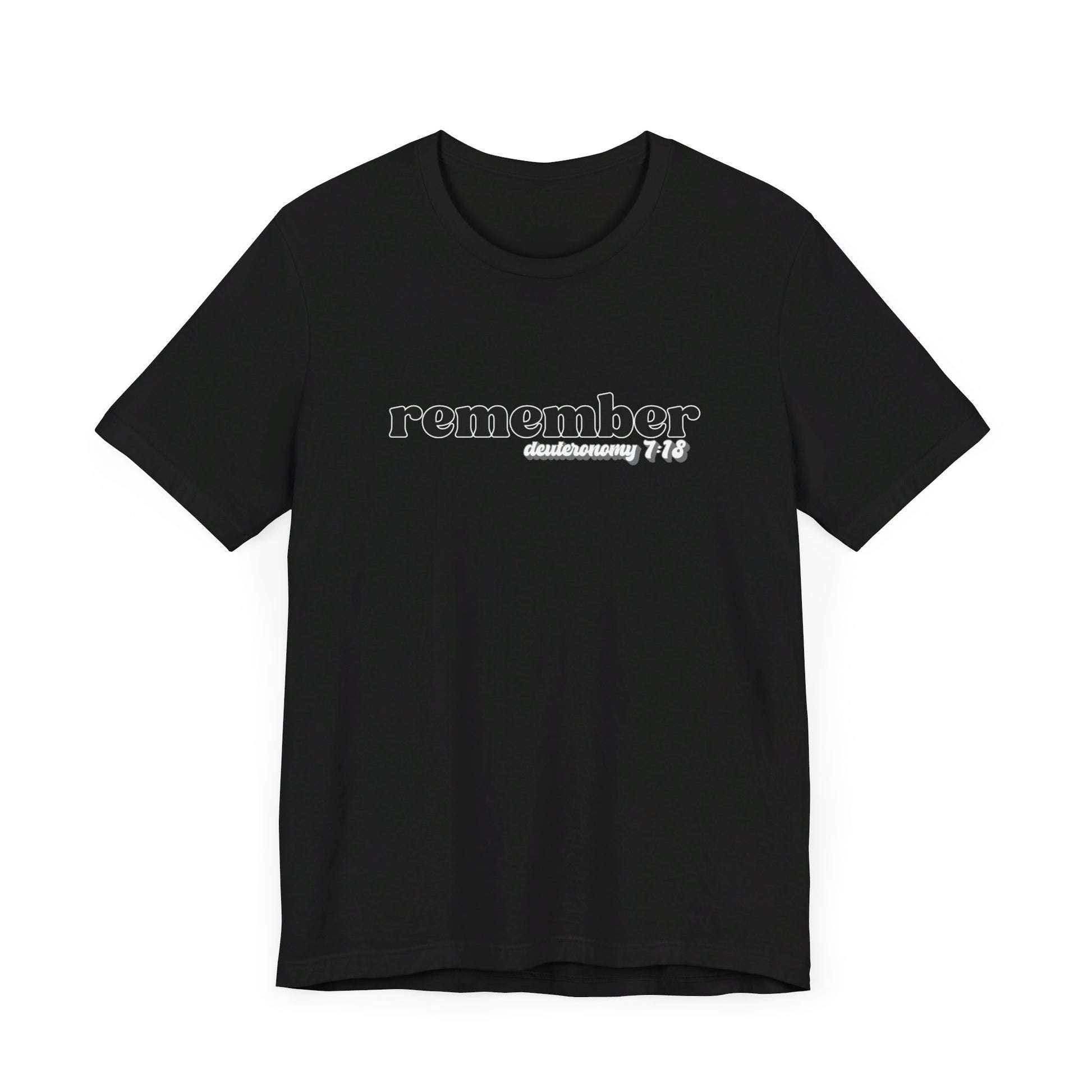 Introducing REMEMBER , a new addition to Audience of One Creations' 2023 Tee Collection. The REMEMBER Tee is perfect for those who want to express their trust in God with style! This shirt features the phrase “Remember” in bold letters and it comes from Deuteronomy 7:18. This passage highlights how God told His people that when they saw difficult situations and troubles to remember how He showed up in the past. It’s a reminder that if He did it before He is faithful to do it AGAIN! The REMEMBER allows the wearer to share this important faith truth with the world in a simple yet eye-catching design. It makes a great conversation starter for those who want to share their faith with others. It's also a perfect gift for anyone who appreciates the power of faith and complete trust in God.