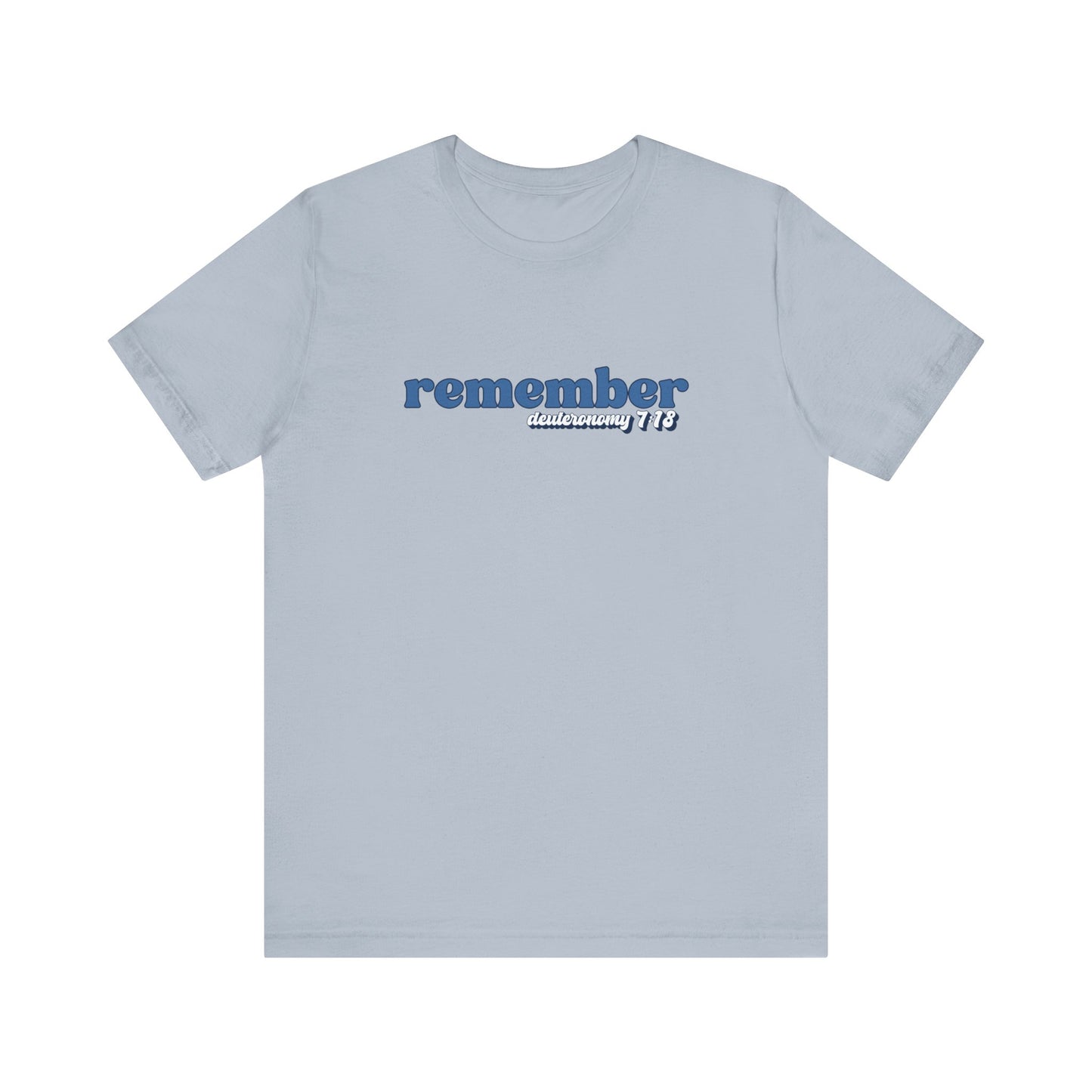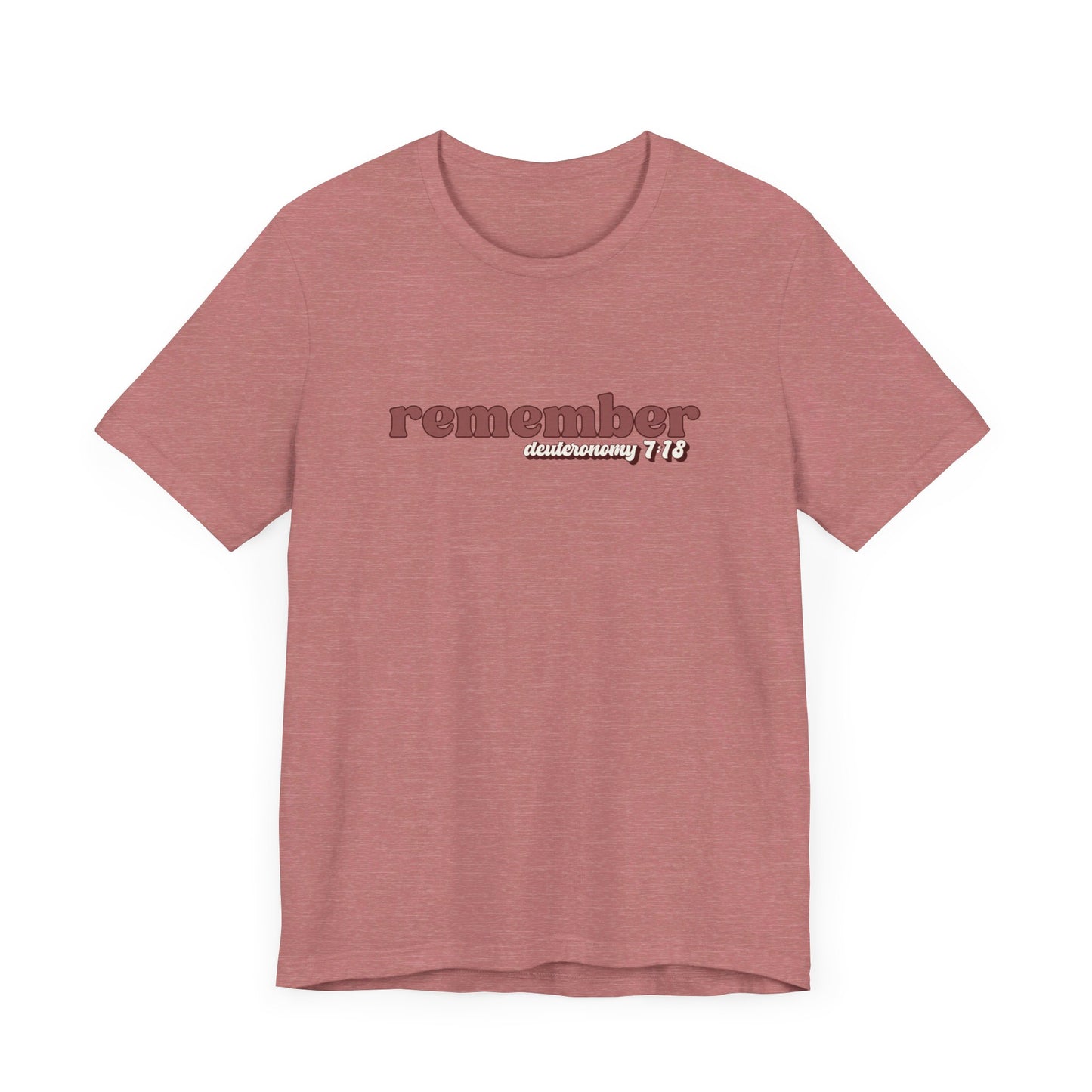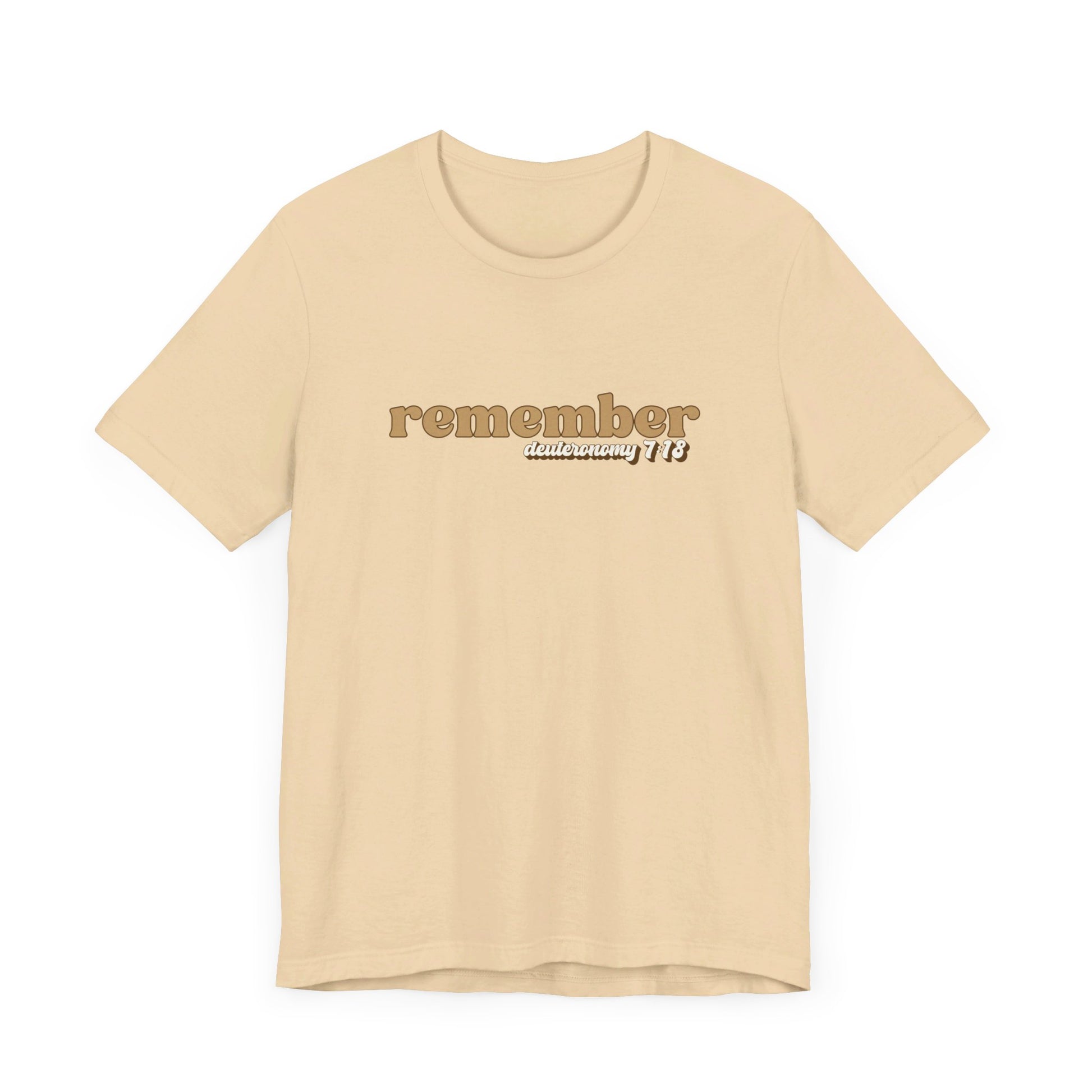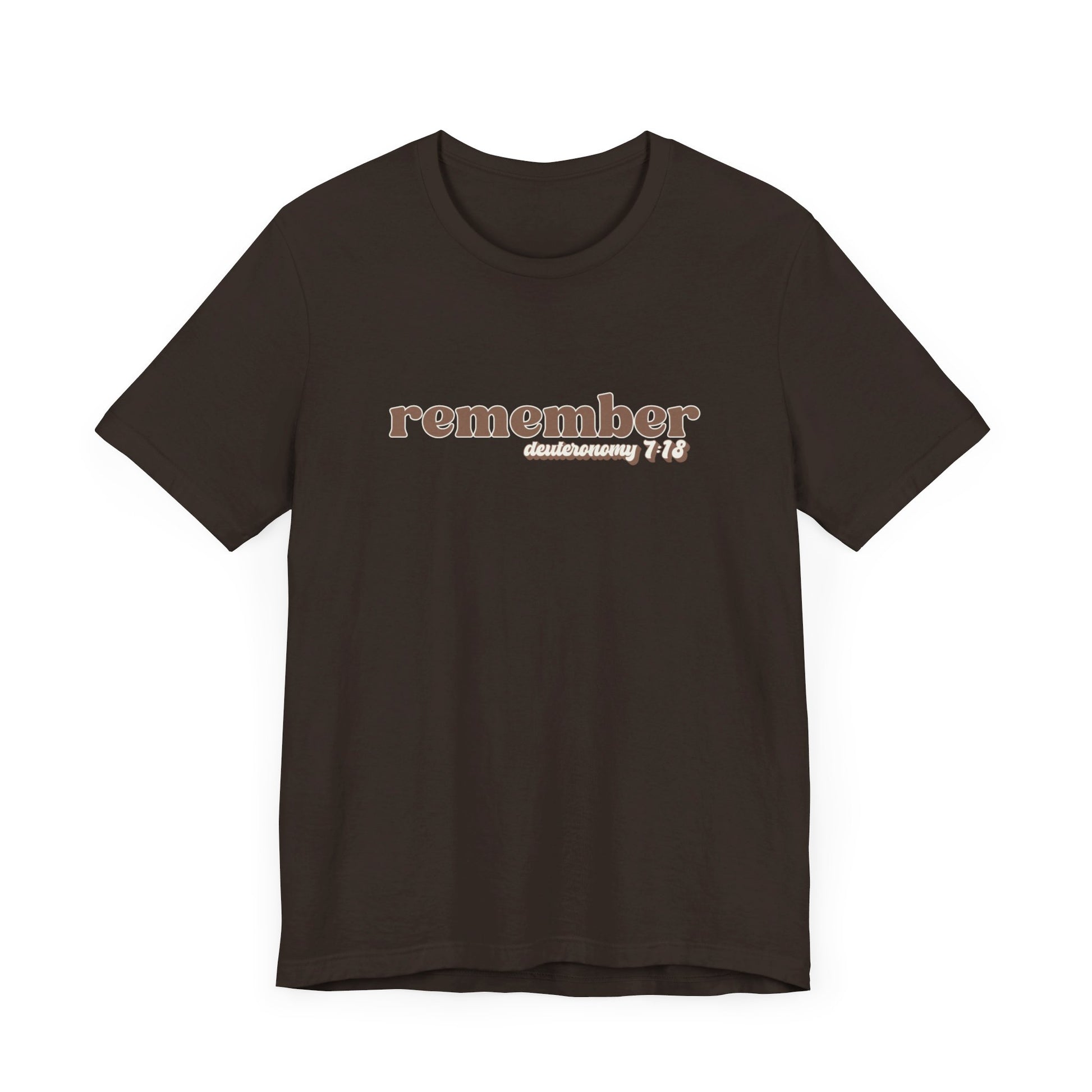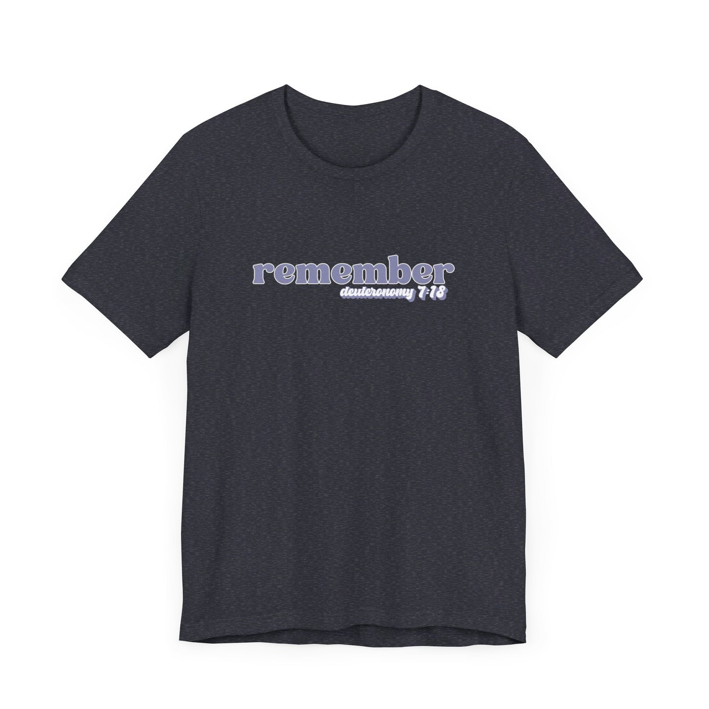 Introducing REMEMBER , a new addition to Audience of One Creations' 2023 Tee Collection. The REMEMBER Tee is perfect for those who want to express their trust in God with style! This shirt features the phrase “Remember” in bold letters and it comes from Deuteronomy 7:18. This passage highlights how God told His people that when they saw difficult situations and troubles to remember how He showed up in the past. It’s a reminder that if He did it before He is faithful to do it AGAIN! The REMEMBER allows the wearer to share this important faith truth with the world in a simple yet eye-catching design. It makes a great conversation starter for those who want to share their faith with others. It's also a perfect gift for anyone who appreciates the power of faith and complete trust in God.
