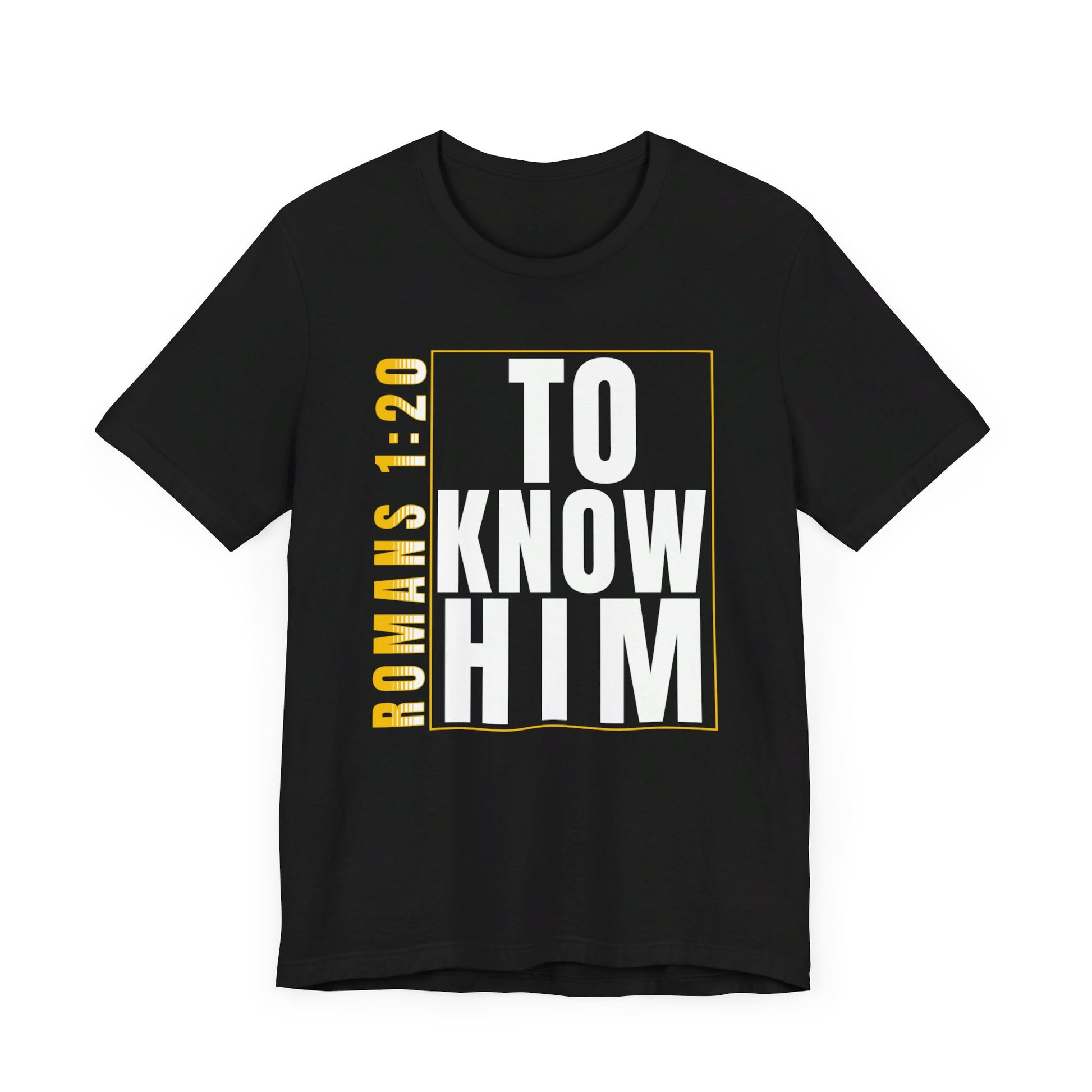 Introducing ROMANS 1:20, a new addition to Audience of One Creations' 2023 Tee Collection. The ROMANS 1:20 Tee is perfect for those who want to express the truth that is found in all of creation with style! This shirt features the phrase “To Know Him” in bold letters, reminding us that all of creation is a sign of God’s magnificant power and majesty. There is no excuse to not recognize that God is the One and True God. The ROMANS 1:20 allows the wearer to share this important faith truth with the world in a simple yet eye-catching design. It makes a great conversation starter for those who want to share their faith with others. It's also a perfect gift for anyone who appreciates the truth of God’s majesty and the signs of His power in all of Creation.