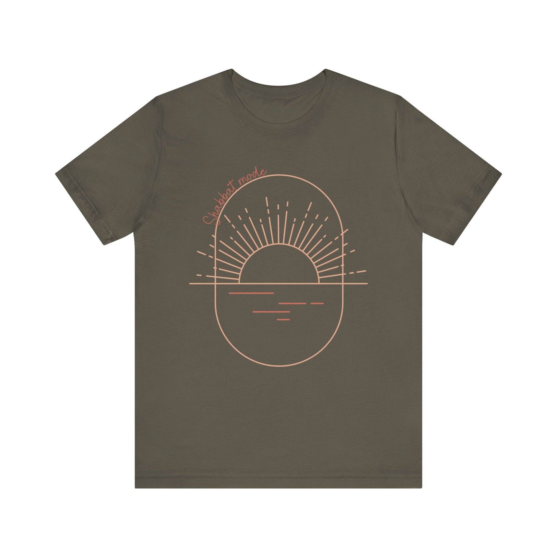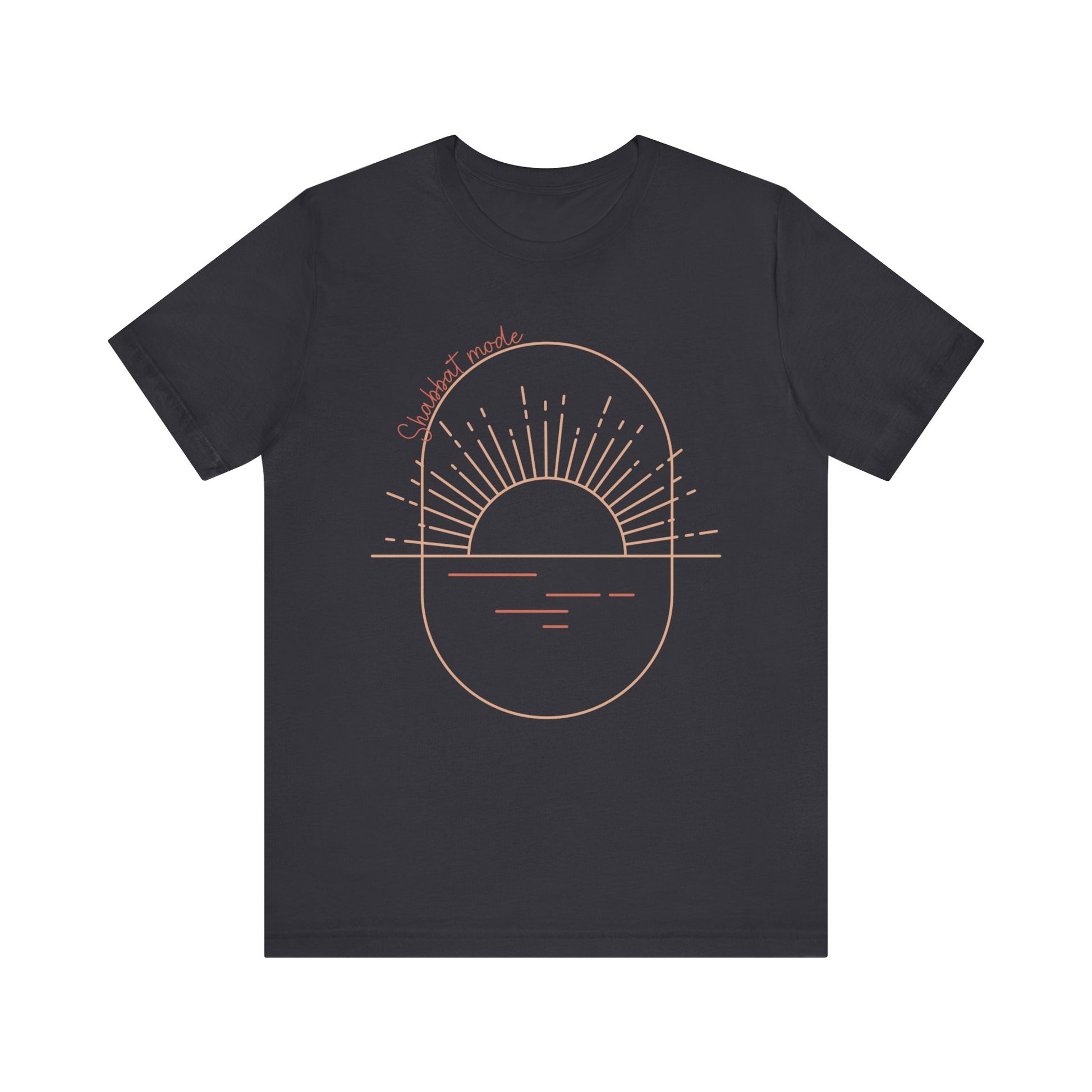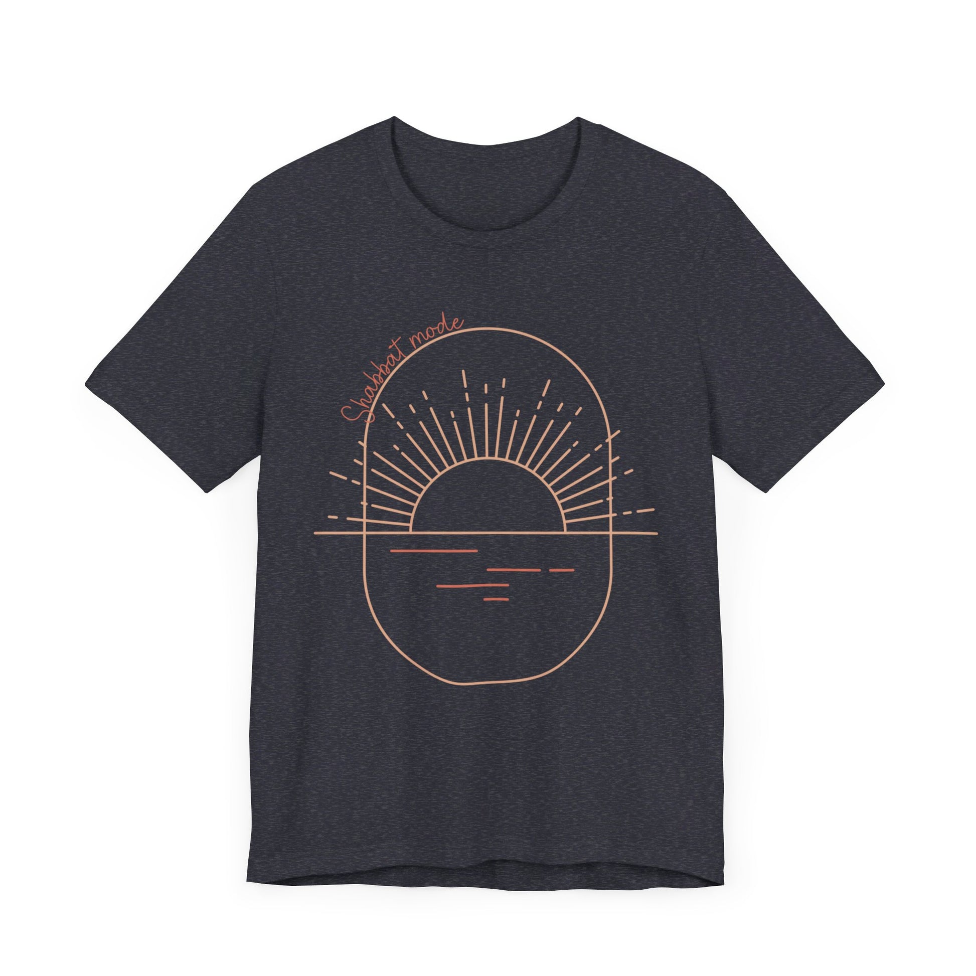 Introducing SHABBAT MODE, a new addition to Audience of One Creations' 2023 Tee Collection. It's all about the distinction, the differentiation between the 6 days of work and Shabbat, the winding down of the work week and welcoming in the Father's gift of rest. The setting sun is the image that sparks joy in our hearts as Friday comes each week letting us know that a special time is near. Being able to disconnect from the world and connect with God in such a meaningful way each week with our families is a cherished part of the faith. The Shabbat Mode Tee allows the wearer to share this important faith truth with the world in a simple yet eye-catching design. It makes a great conversation starter for those who want to share their faith with others. It's also a perfect gift for anyone who appreciates the beauty of God's wisdom and the way with which He cares for us .