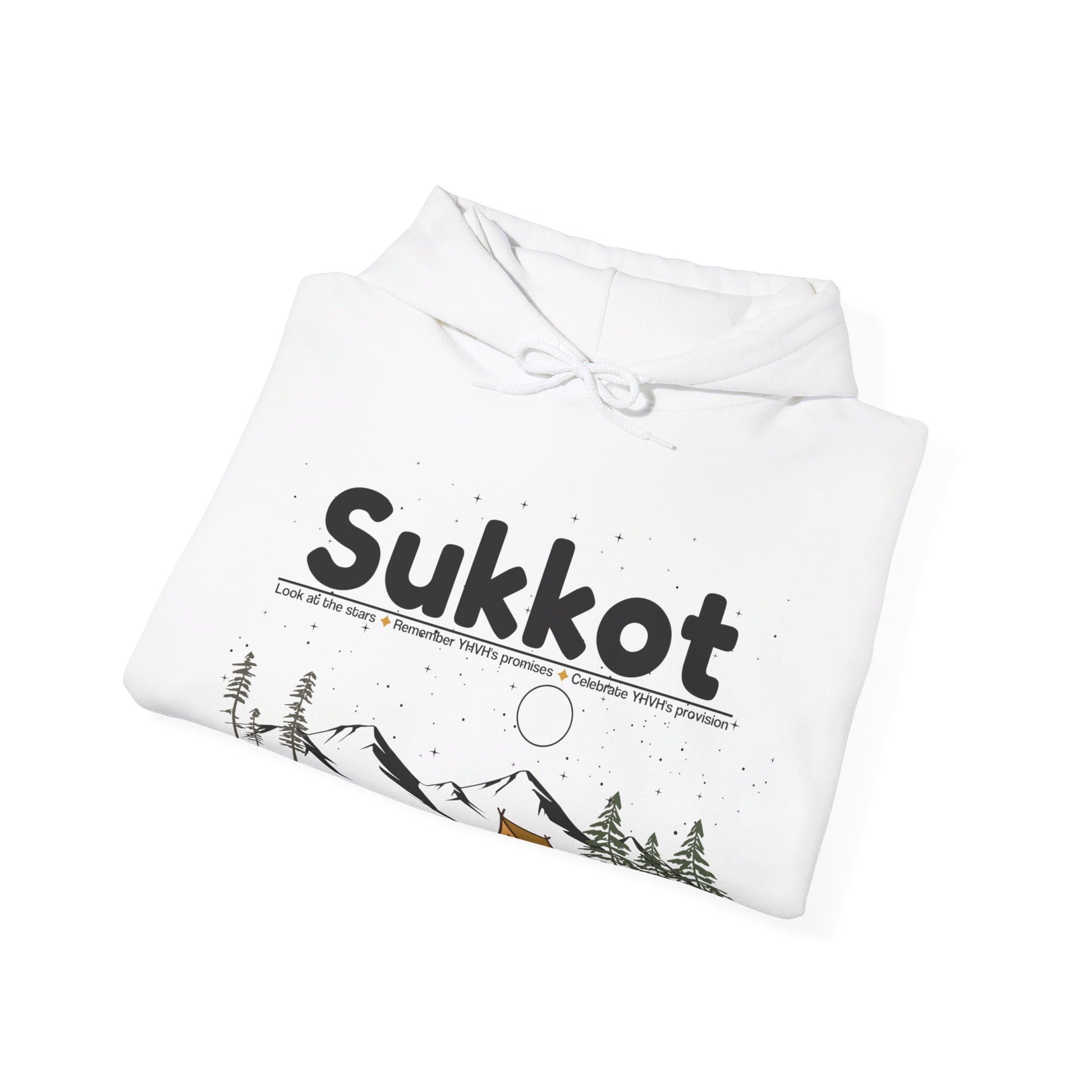 The SUKKOT - LOOK AT THE STARS Hoodie is the ideal piece for this coming crisp cool season with a unisex heavy blend that is relaxation itself. Made with a thick blend of cotton and polyester, it feels plush, soft and warm, a perfect choice for any cold day. In the front, the spacious kangaroo pocket adds daily practicality while the hood's drawstring is the same color as the base sweater for extra style points.Whether you wear it to a worship service, class, or just around town, it's a great way to express your faith in a subtle yet meaningful way.