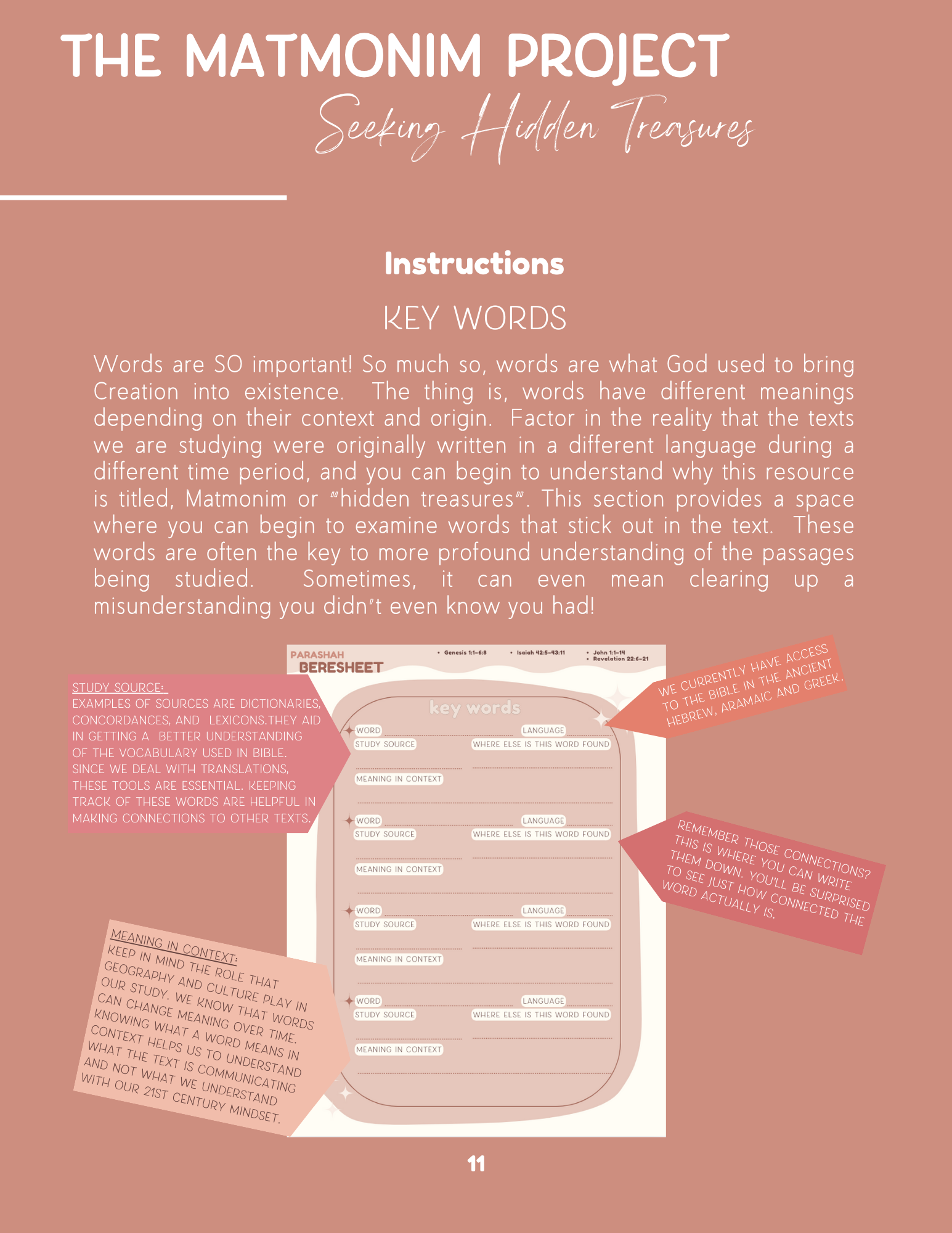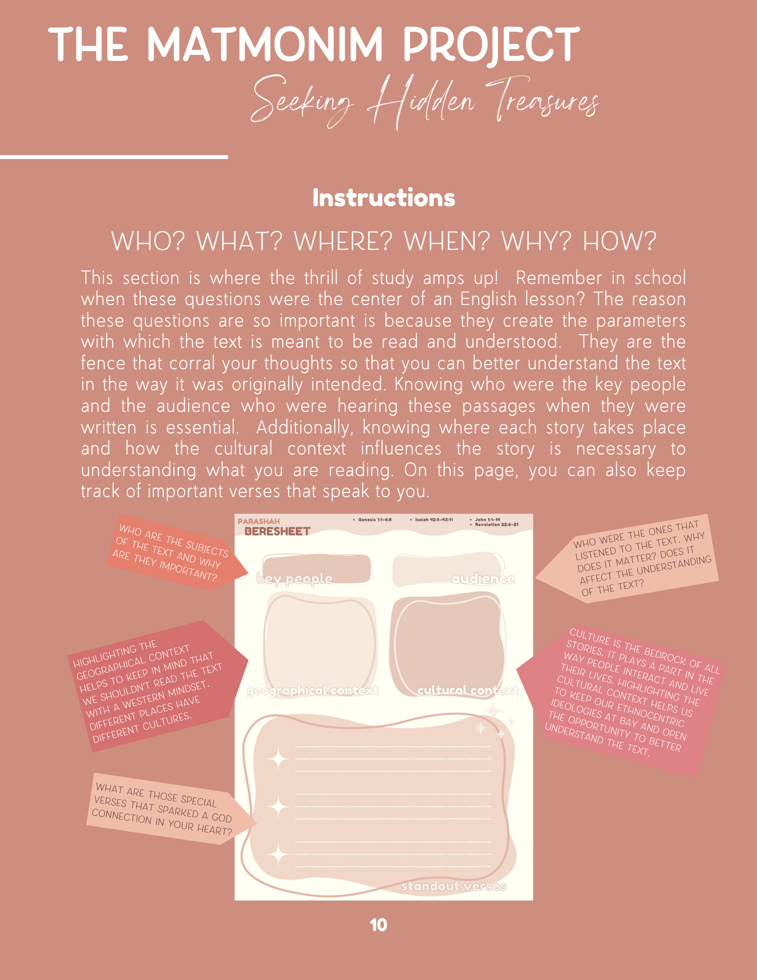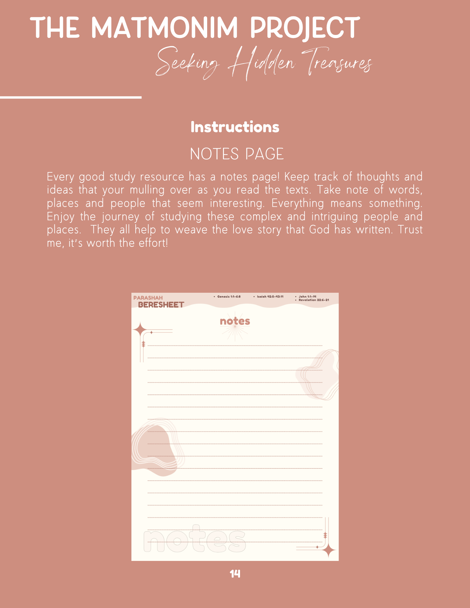 The Matmonim Project is the perfect companion to your Bible study. Using the ancient idea of dividing the Torah (the five books of Moses) along with the Haftarah (the writings of the prophets in the Old Testament) and the Brit Chadashah (the New Testament writings) into manageable portions of study, the Matmonim Project provides you with an interactive and thought-provoking way to take a look at the Old Testament and the New Testament each week. This method of studying encourages asking questions, searching God out in your time of meditation and study, and strengthening your faith in the Word. It’s all about making connections and seeing God in the whole of Scripture. Let the journey begin!