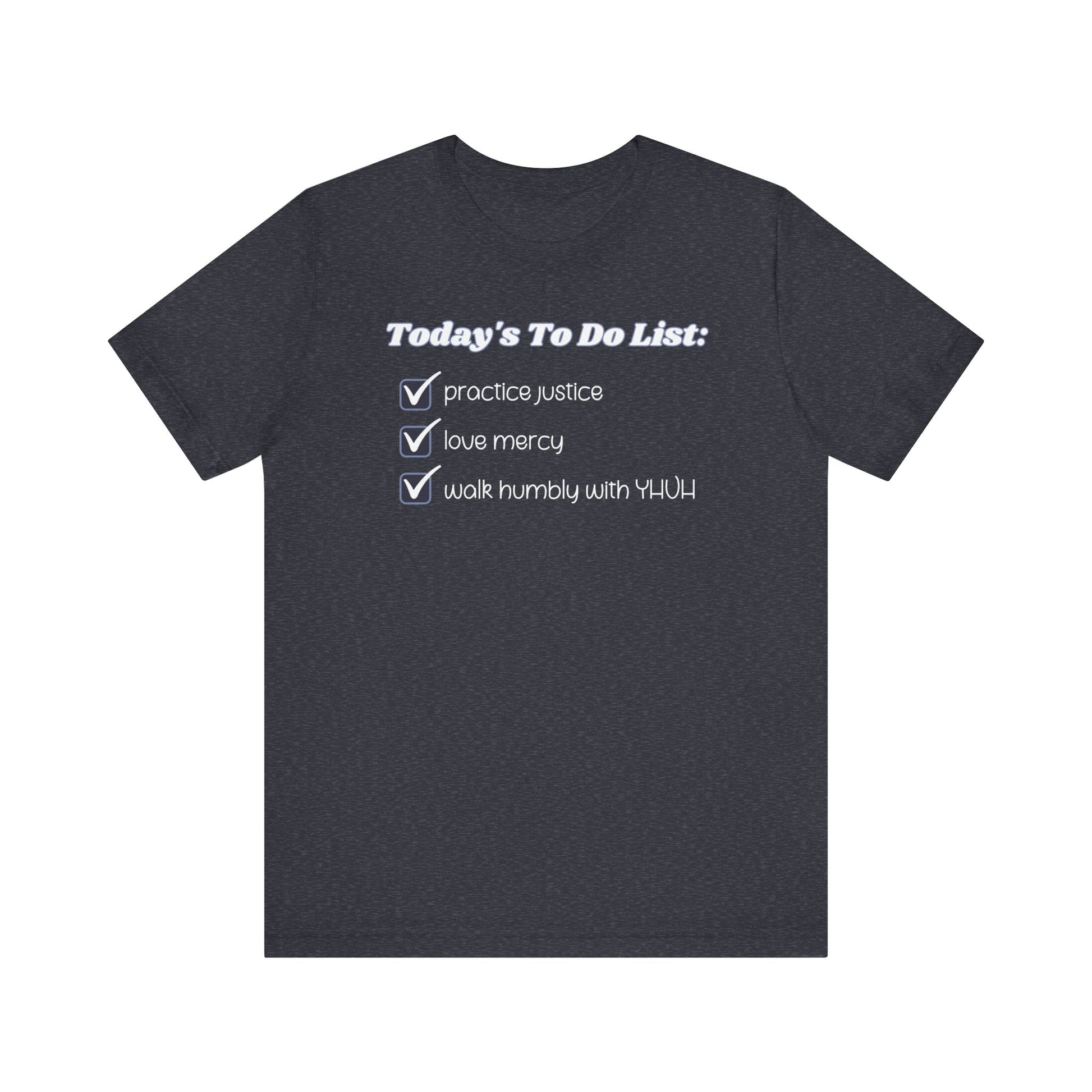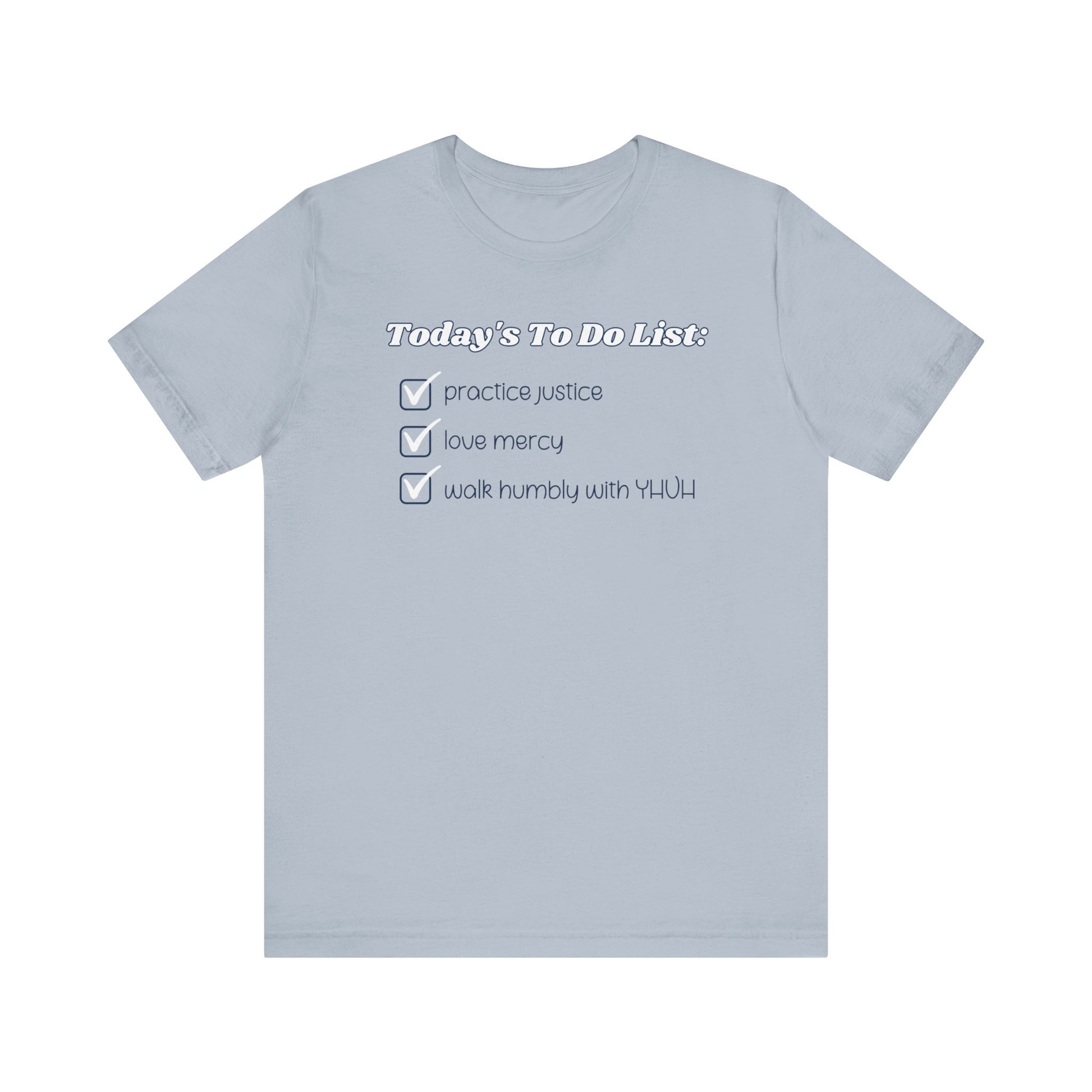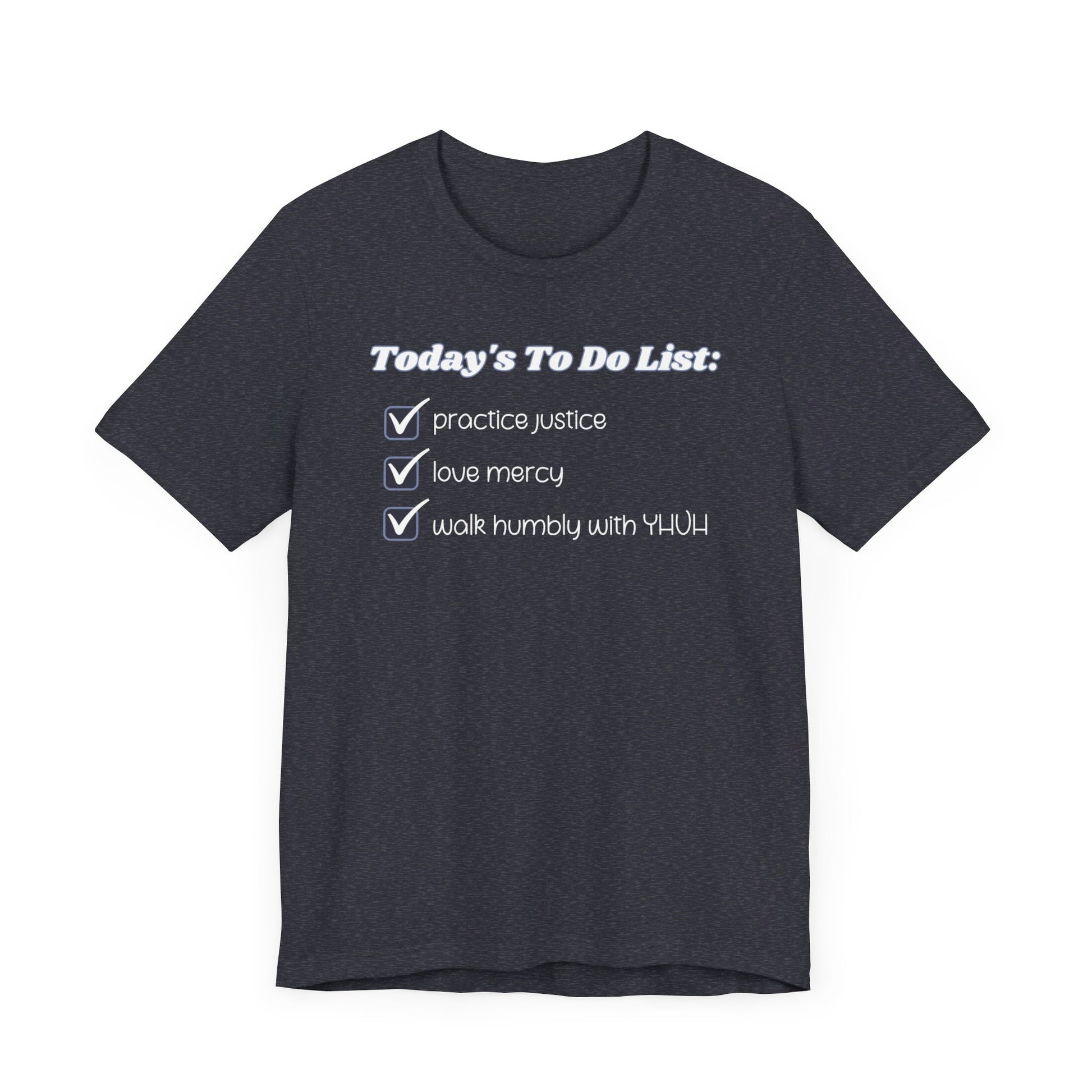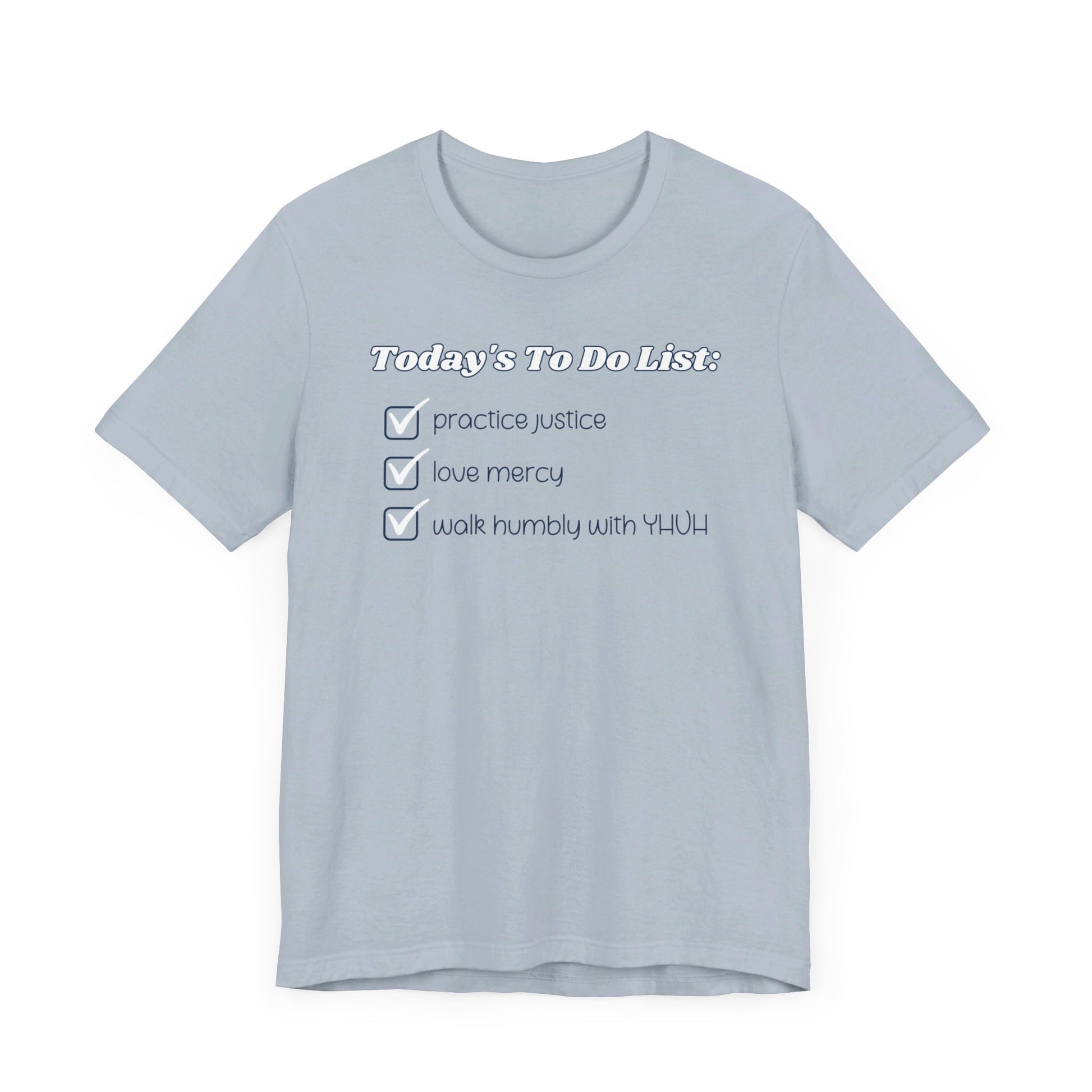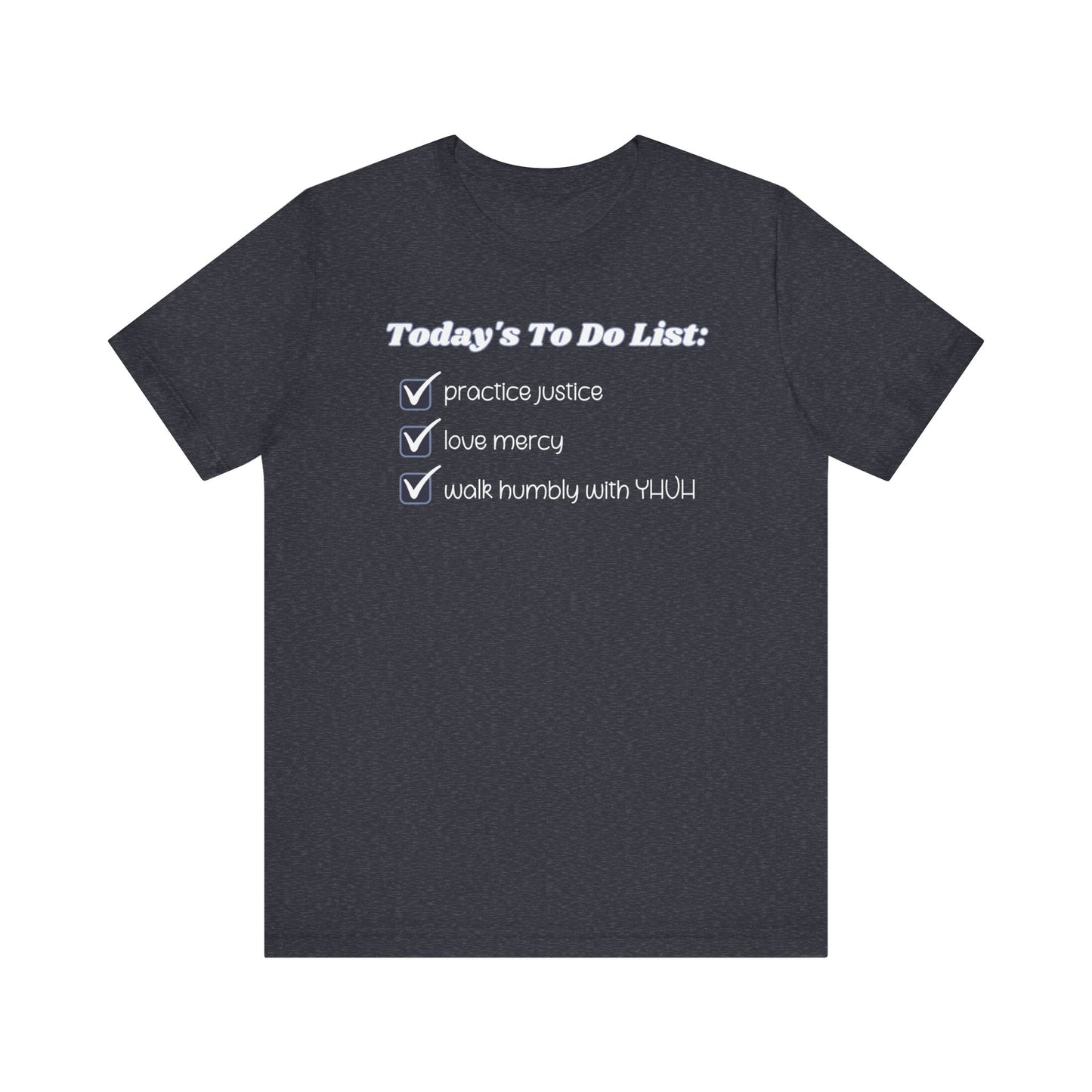 Introducing the TODO LIST , a new addition to Audience of One Creations' 2023 Tee Collection. The TODO LIST Tee is perfect for those who love all things lists and organization! This shirt features the phrase “Today’s To Do List” in bold letters and highlights the essence of what it means to walk out Torah . The TODO LIST allows the wearer to share this important faith truth with the world in a simple yet eye-catching design. It makes a great conversation starter for those who want to share their faith with others. It's also a perfect gift for anyone who appreciates the power of words and their ability to remind us of what’s important in life.