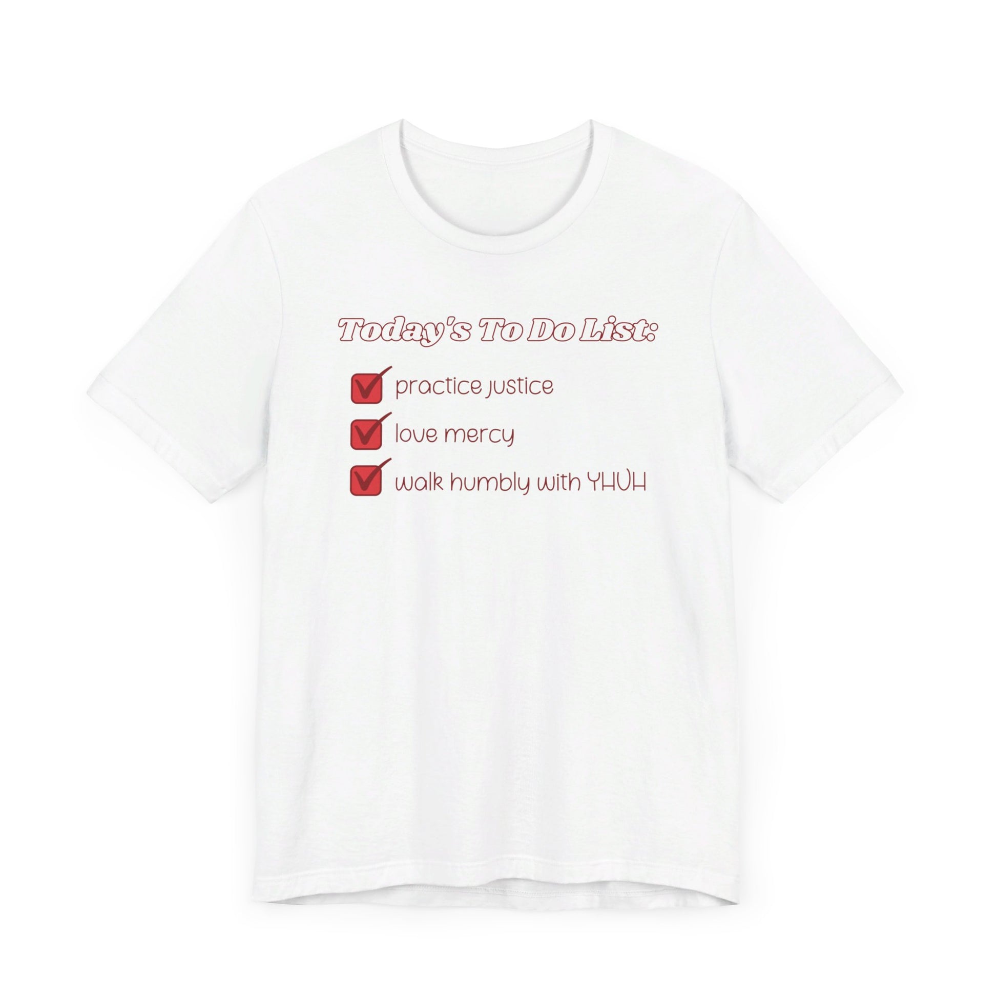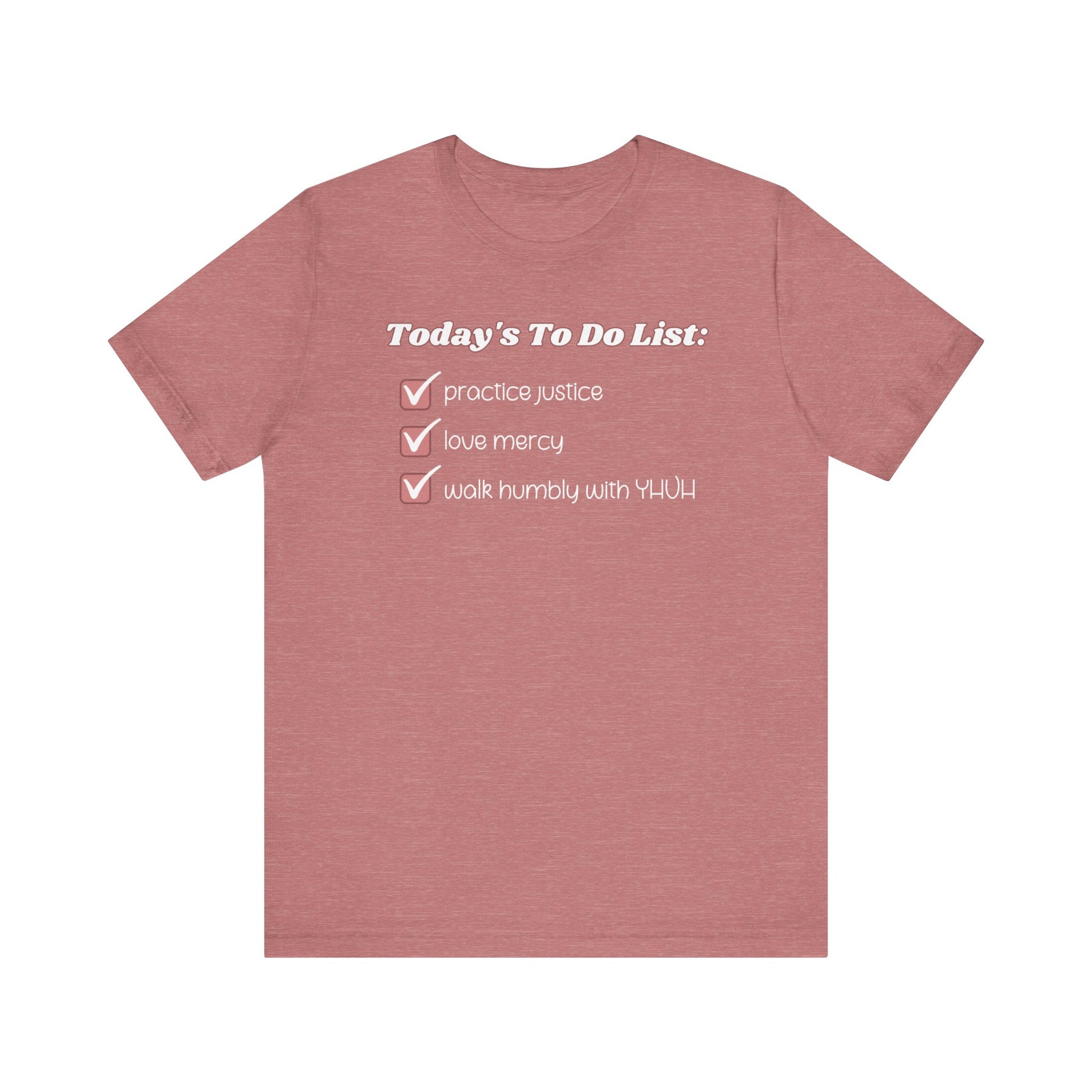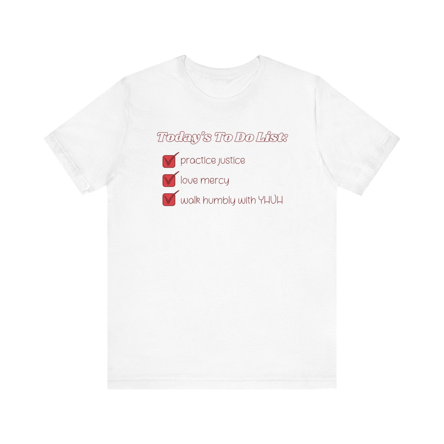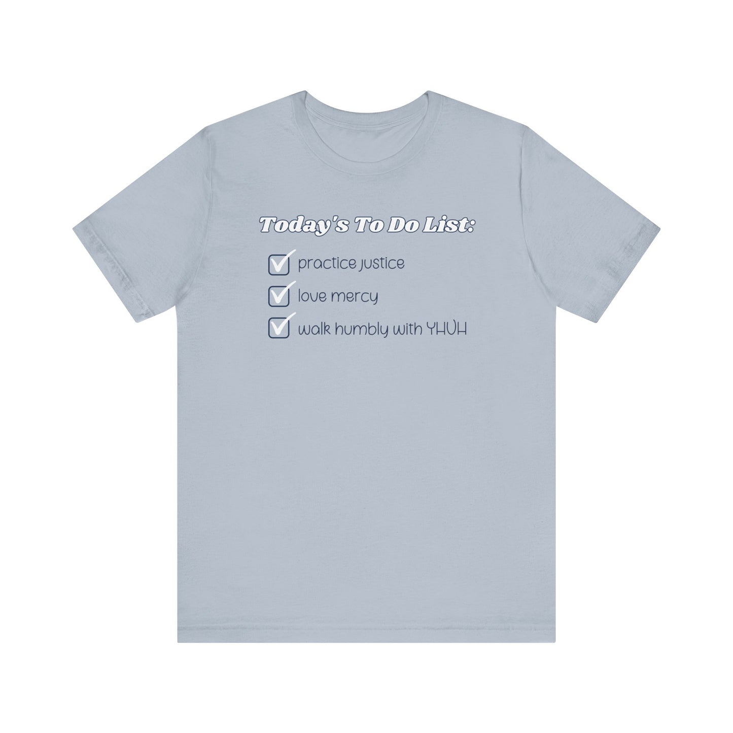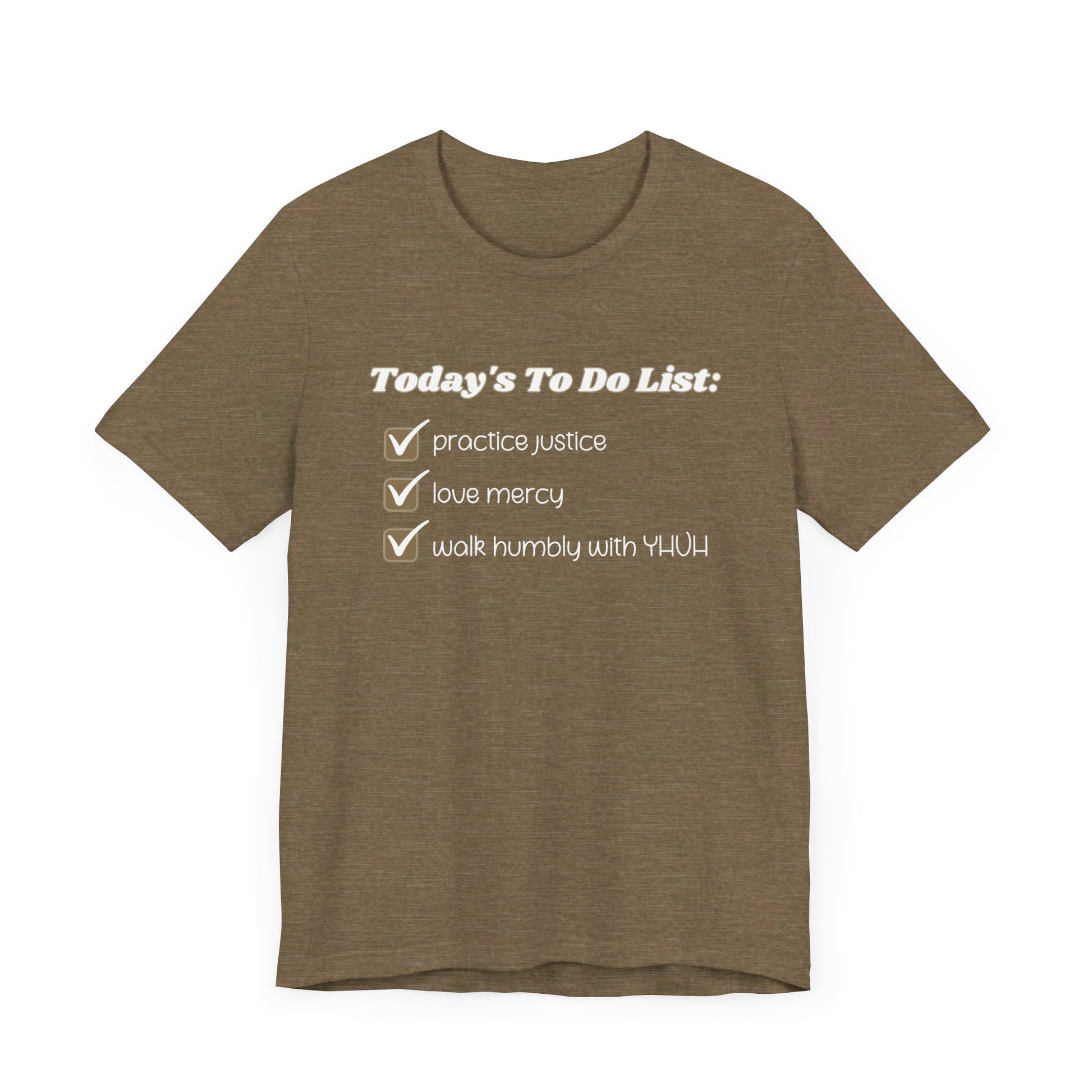 Introducing the TODO LIST , a new addition to Audience of One Creations' 2023 Tee Collection. The TODO LIST Tee is perfect for those who love all things lists and organization! This shirt features the phrase “Today’s To Do List” in bold letters and highlights the essence of what it means to walk out Torah . The TODO LIST allows the wearer to share this important faith truth with the world in a simple yet eye-catching design. It makes a great conversation starter for those who want to share their faith with others. It's also a perfect gift for anyone who appreciates the power of words and their ability to remind us of what’s important in life.