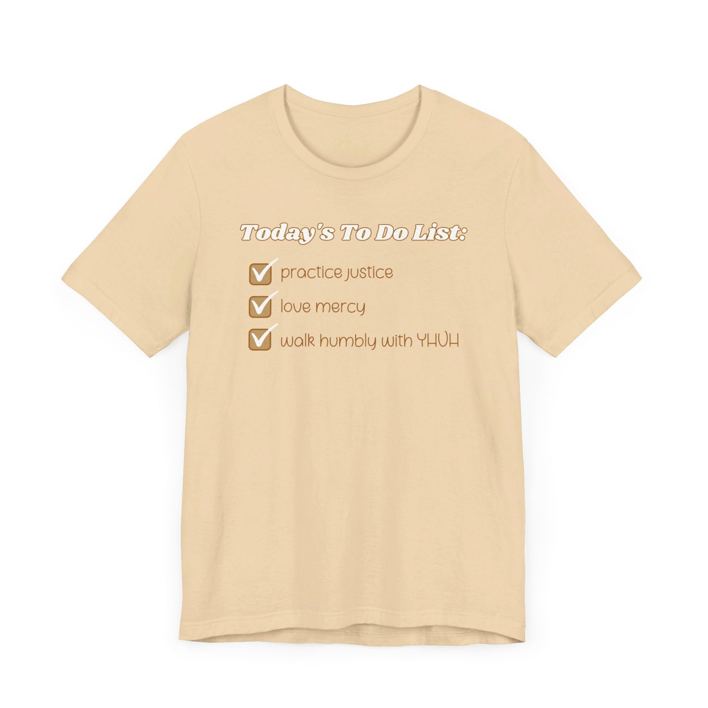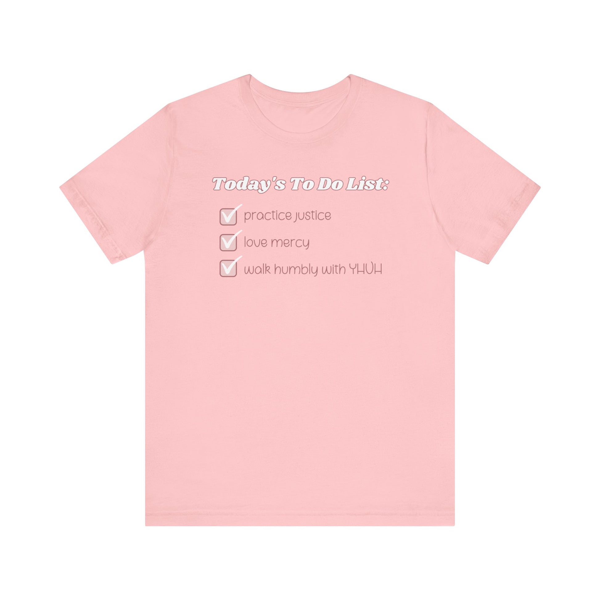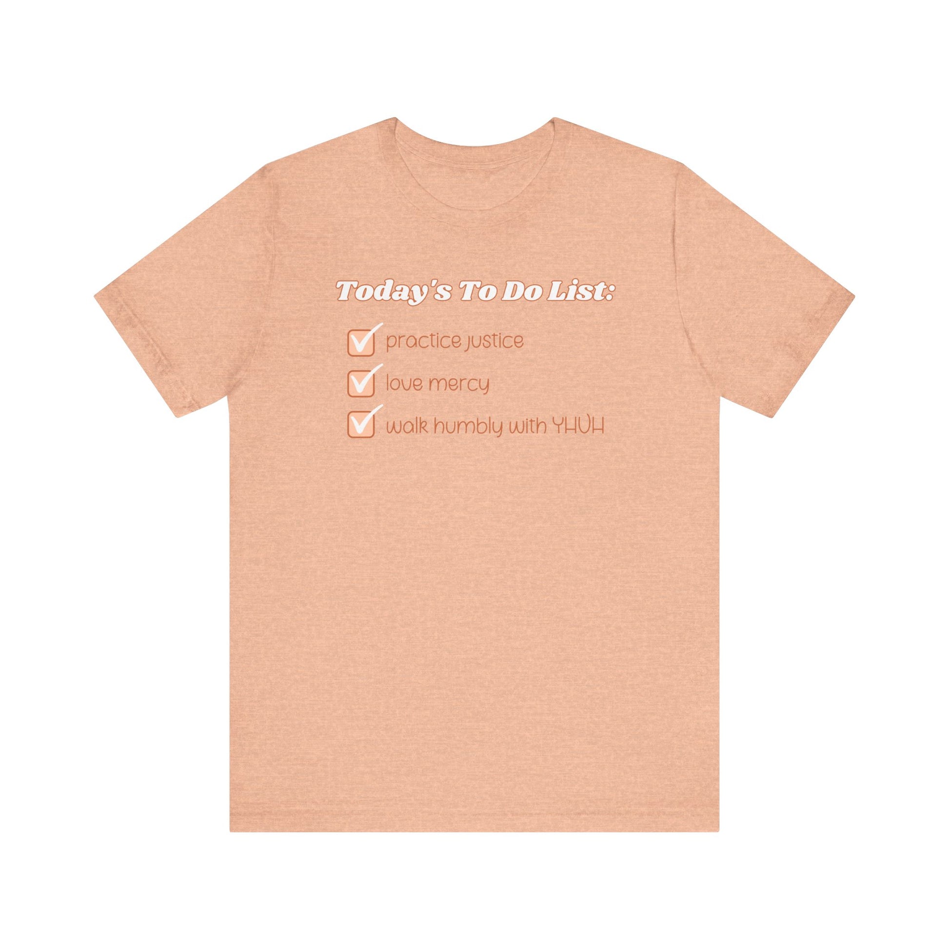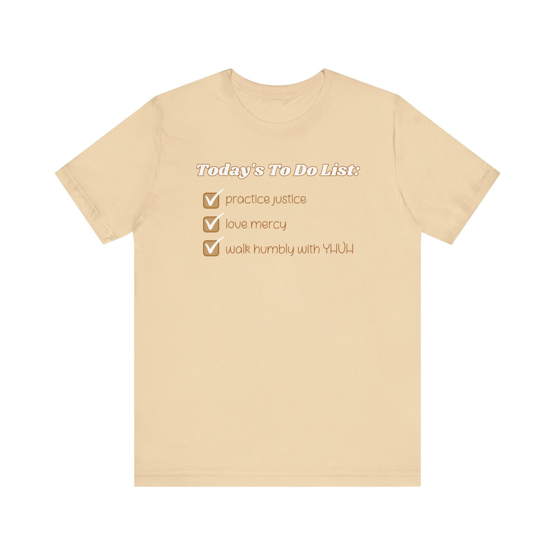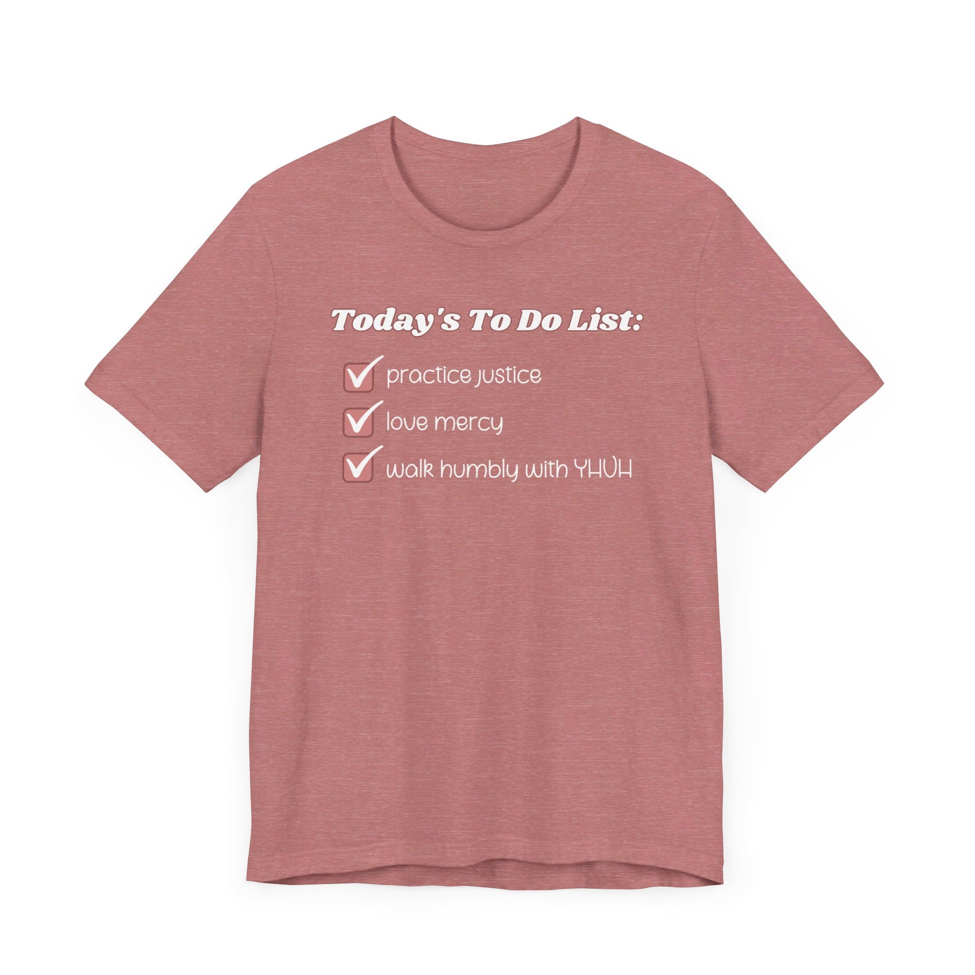 Introducing the TODO LIST , a new addition to Audience of One Creations' 2023 Tee Collection. The TODO LIST Tee is perfect for those who love all things lists and organization! This shirt features the phrase “Today’s To Do List” in bold letters and highlights the essence of what it means to walk out Torah . The TODO LIST allows the wearer to share this important faith truth with the world in a simple yet eye-catching design. It makes a great conversation starter for those who want to share their faith with others. It's also a perfect gift for anyone who appreciates the power of words and their ability to remind us of what’s important in life.